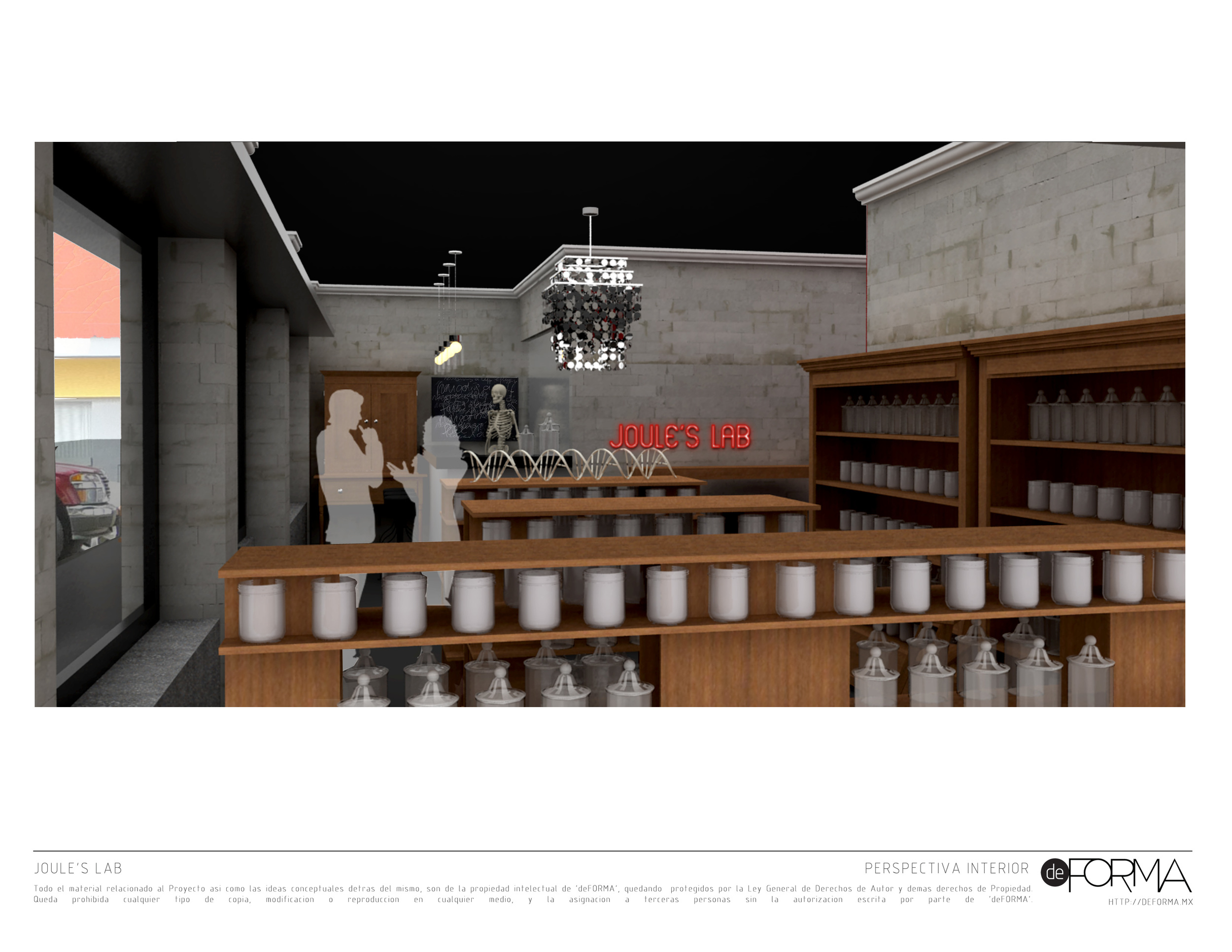 Con la referencia de una antigua botica neoyorquina se desarrolla el proyecto de un laboratorio de limpiezas corporales. El lugar se distribuye por áreas, el consultorio de valoración médica, el área de laboratorio y producción, el área de tienda diseño, sala de espera y caja. La selección de materiales juega un papel importante en este proyecto porque nos hace la referencia al look vintage que se pretende obtener, pero también posee el toque contemporáneo.